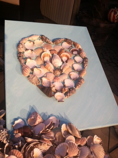 down seashells with hot glue. This seashell heart will bring a Mother joy!